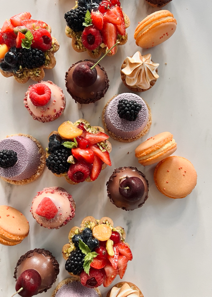 Bestehend aus Mousse-Törtchen, Frucht-Tartelette, Cheesecake,